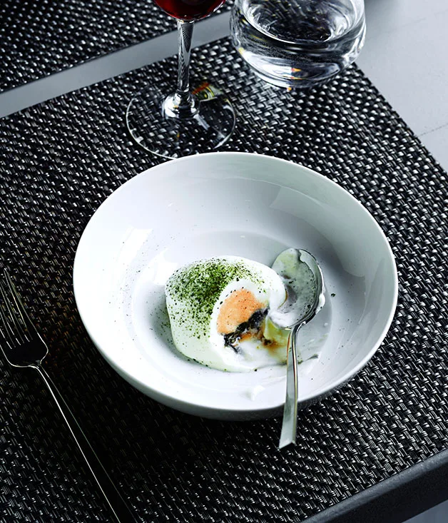 The “white salad” that follows – curled petals of green apple and turnip cresting pieces of lightly cured Murray cod sprinkled with juniper salt – confirms suspicions that this is cooking of a higher order. There’s a buttermilk dressing underneath, but the flavour of the cod still comes through true and clean.