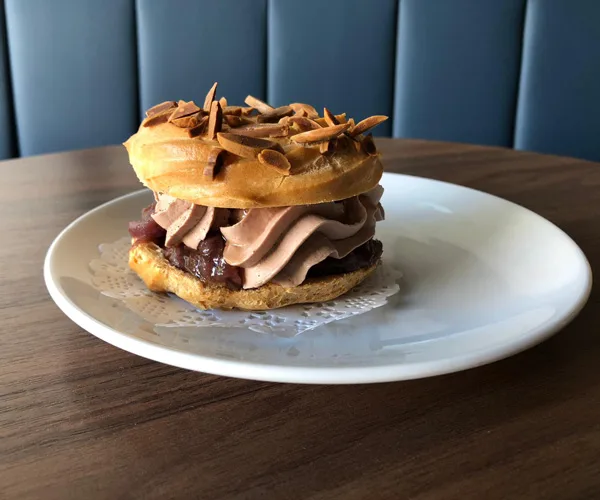 Chicken liver, Paris-Brest with onion jam.